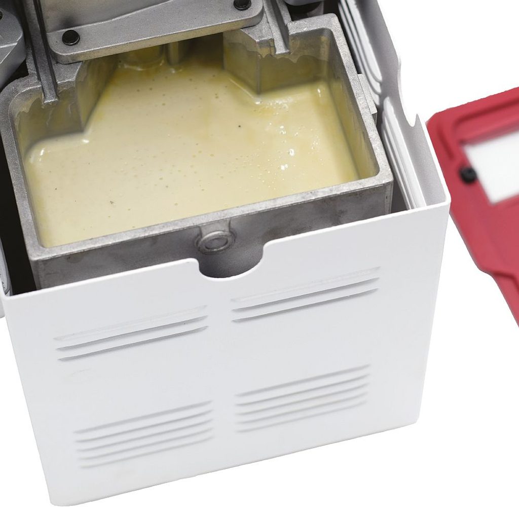 Rychloohřev nejnovější konstrukce roztaví lepidlo ze studeného stavu přibližně do 5 minut. Pokud lepidlo průběžně doplňujete alespoň do poloviny zásobníku, termostat udržuje stroj stále v provozní teplotě. Nanášení lepidla je plynulé a jednoduše nastavitelné pomocí dobře přístupného ovladače. Inovovaný systém dávkování lepidla, účinnější než klasické dvojité nanášení, zaručuje přesné a rovnoměrné pokrytí pásky bez vynechávek, přetoků a zbytečného znečištění stroje.
