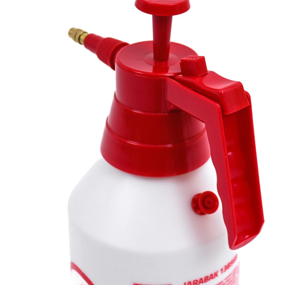 Na nádobě je vyražená stupnice, která umožňuje snadné odměřování a kontrolu množství tekutiny. Rukojeť postřikovače je navržena tak, aby byla široká a pohodlná, což zajišťuje, že vám postřikovač nevyklouzne z rukou, i když pracujete v rukavicích. Rukojeť také obsahuje aretační mechanismus pro možnost nepřetržitého postřiku bez nutnosti držení spouště.