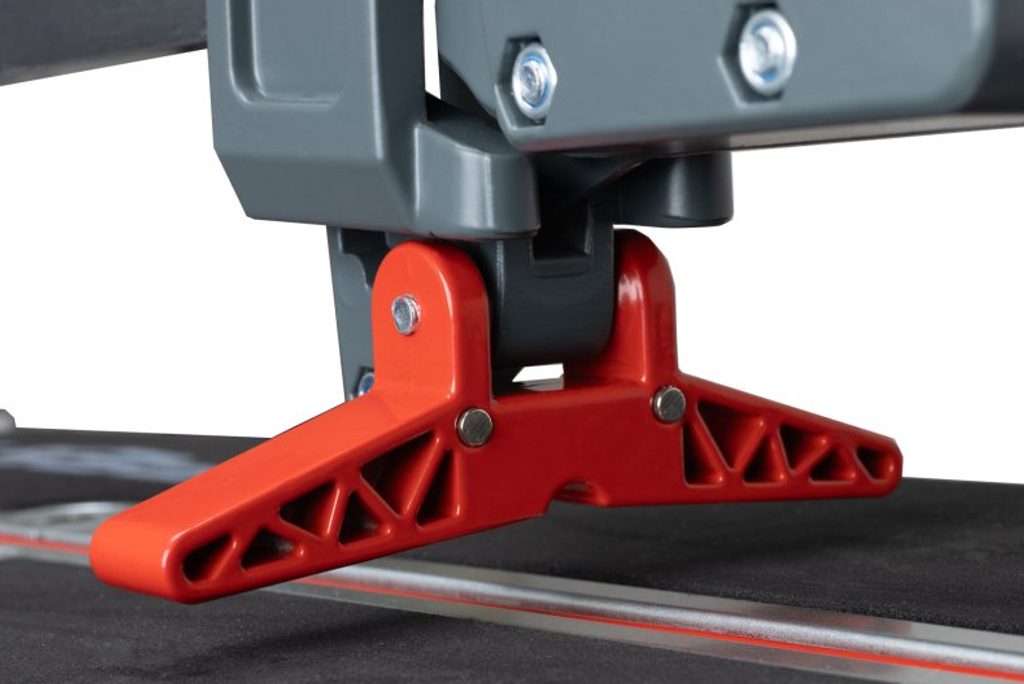 Opěrné desky jsou potažené gumou a uložené na pružinách, což výrazně usnadňuje přesný lom dlaždic. K dispozici je i milimetrové měřítko s úhelníkem a odolným kovovým středem s vybráním, které usnadňuje diagonální řezy. Pro práci s většími formáty oceníte přídavné odpružené boční opěry, jež lze snadno umístit do tří různých pozic.