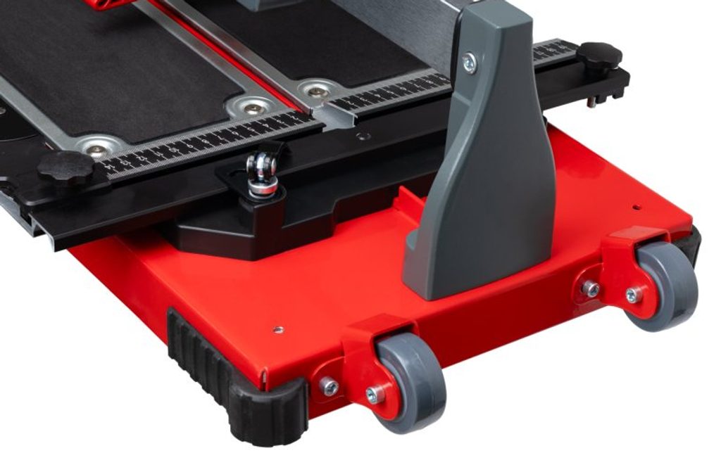 Pro snadnější manipulaci je řezačka vybavena pojezdovými kolečky a masivním madlem, což usnadňuje její přemístění na stavbě i v dílně.