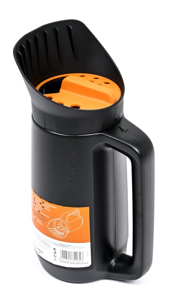 Ruční sypač Fiskars Solid pro přesné rozmetání písku, hnojiv, soli a dalších sypkých materiálů. Snadné ovládání dávkování díky otočnému nastavovacího knoflíku pro volbu rychlého, středního nebo pomalého toku materiálu.