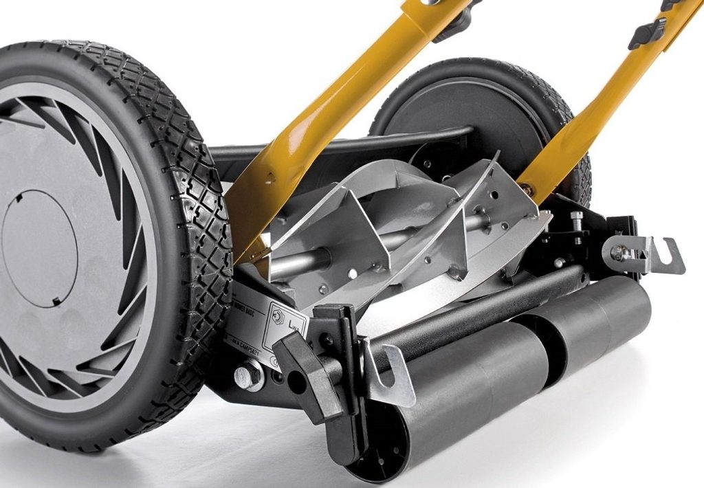 SCM 240 R má záběr sečení 40 cm a zadní rotační válec, který vyhlazuje trávu po posekání, aby vznikl rovnoměrný vzhledný povrch. Páky nastavení vám umožní snadno a rychle volit mezi třemi sekacími polohami v rozmezí od 25 do 60 mm.