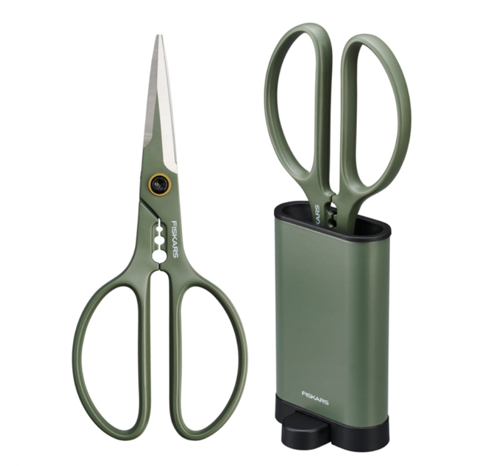 Nůžky jsou navíc vybaveny vestavěným ořezávačem stonků, který usnadňuje odstraňování listů a trnů. Držadla s většími oky jsou navržena tak, aby vyhovovala jak pravákům, tak levákům. Součástí balení je také stylové volně stojící pouzdro, které umožňuje pohodlné a praktické skladování nůžek.