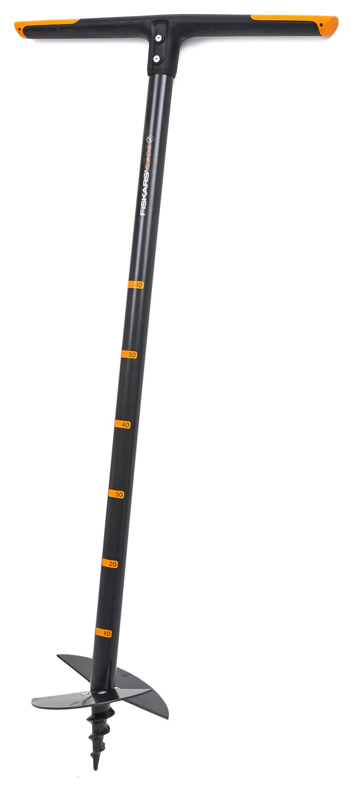 Zemní vrták QuikDrill™ Fiskars není konstruován tradičním způsobem s dlouhou spirální šroubovicí ale má dvě optimálně nakloněné čepele z bórové oceli upevněné kolem ostrého hrotu. Tento design umožňuje pronikat i do tužších půd s menším odporem a brání mačkání země. Vyhazování vyvrtaného materiálu na úhlednou hromadu je snadné a otvor je brzy vyvrtán.
