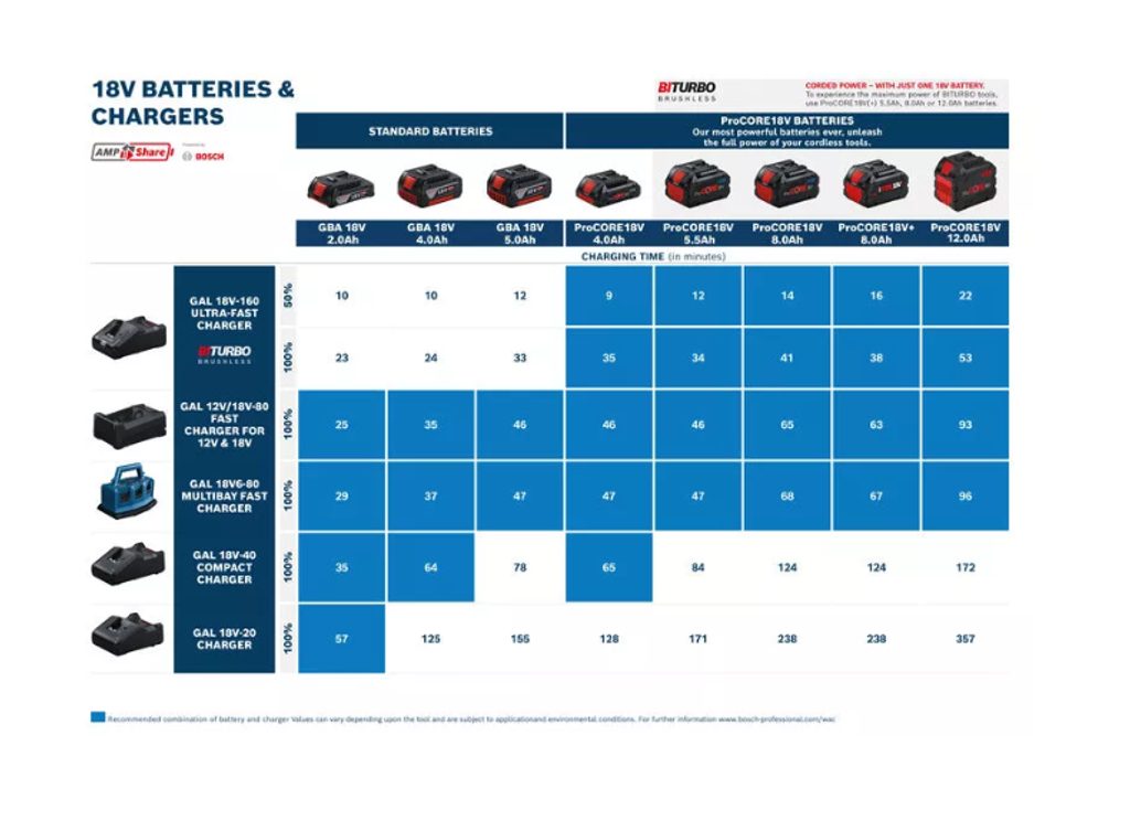 Rychlonabíječka Bosch GAL 12V/18V-80 je kompatibilní se všemi 12V a 18V akumulátory Bosch Professional z aku programu Bosch Professional 12V a Bosch Professional 18V, což znamená, že vám stačí jediný přístroj pro celou dílnu i stavbu.