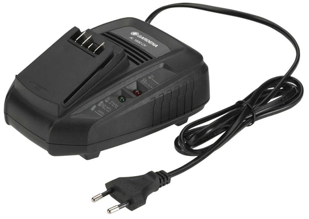 Rychlonabíječka GARDENA AL 1830 CV je navržena pro všechny baterie z řady POWER FOR ALL z aku programu Gardena 18V POWER FOR ALL. . Plné nabití akumulátoru o kapacitě 2,5 Ah trvá 60 minut. LED indikátor na nabíječce neustále ukazuje stav nabíjení.