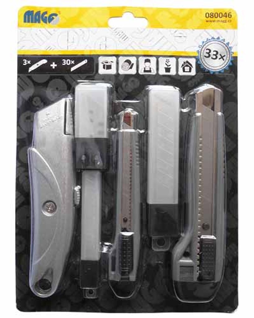 Sada 3 ulamovacích nožů + náhradní čepele - 3x10ks MAGG