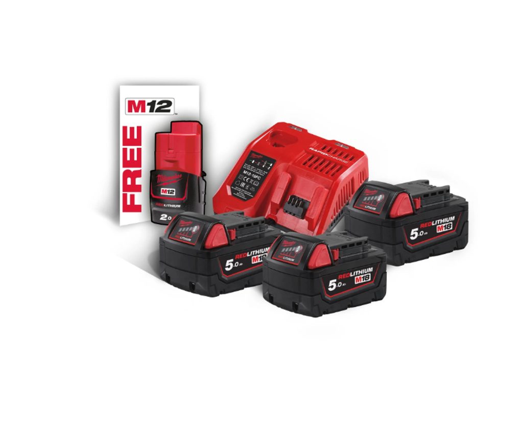 Sada akumulátorů a rychlonabíječky Milwaukee M18 NRG-503 tato sada přináší maximální flexibilitu a dlouhou výdrž pro vaše nástroje z aku programů Milwaukee M18 i M12.