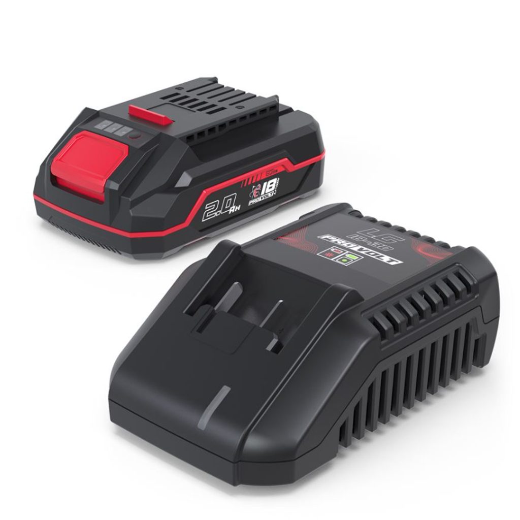 Startovací sada z aku systému GÜDE 18V E³ obsahuje 1 akumulátor ProVolt s kapacitou 2,0 Ah a rychlonabíječku s nabíjecím proudem 3 A.