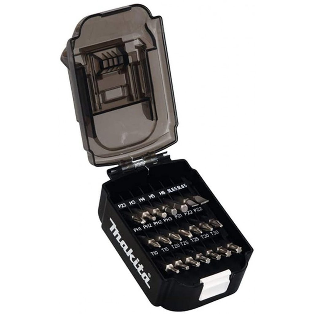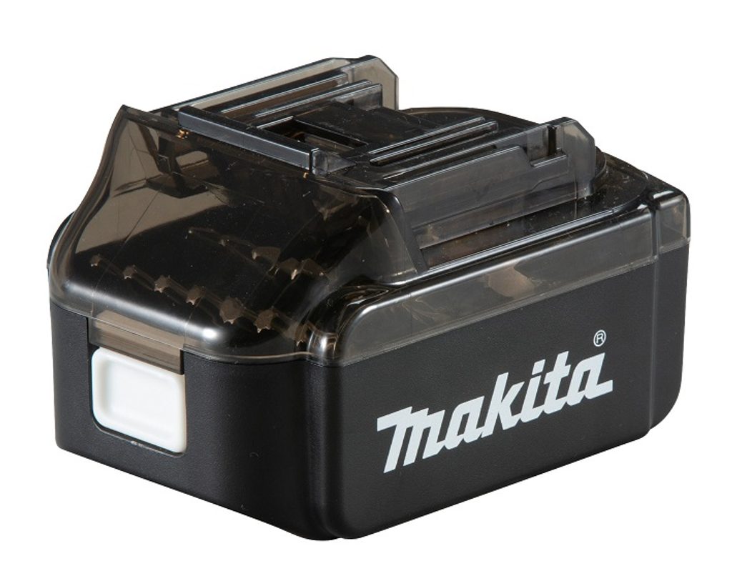 Sada bitů v plastovém obalu ve tvaru aku baterie Makita.