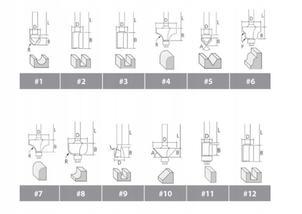 Sada obsahuje 12 ks fréz s upínáním 8 mm.