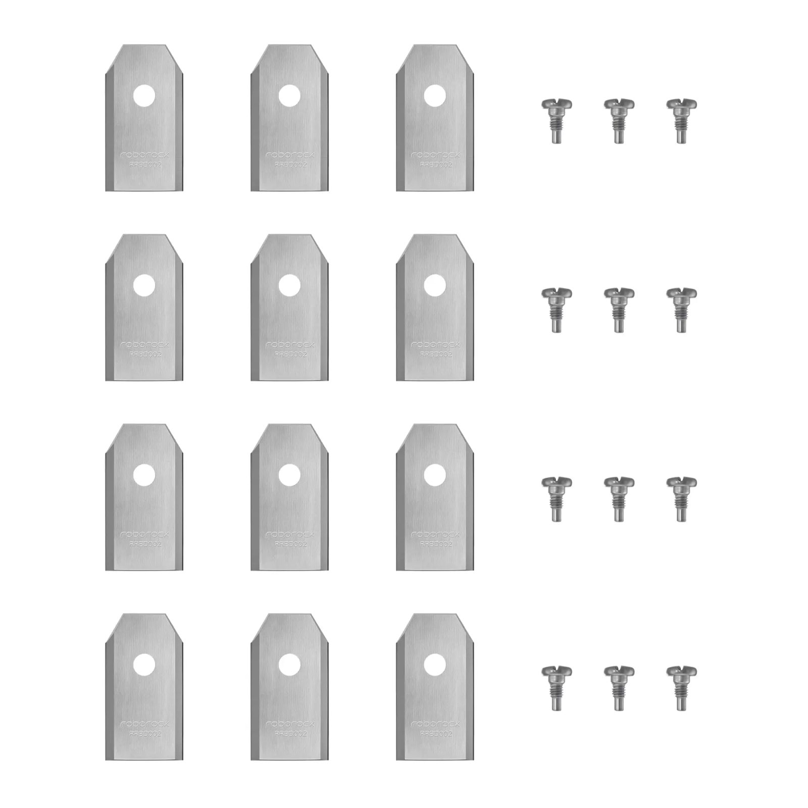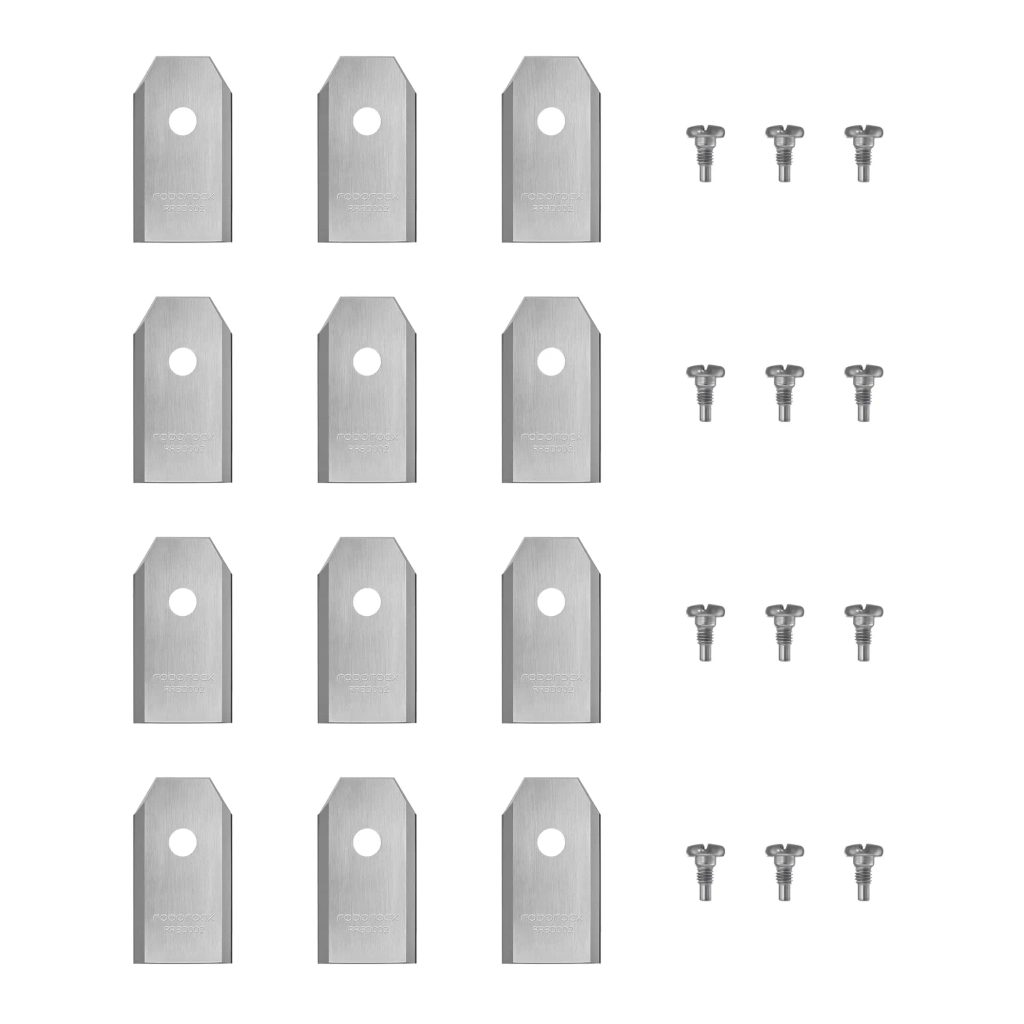 Sada originálních náhradních nožů Roborock Plus obsahuje 12 vylepšených a odolnějších nožů včetně montážních šroubků a je určena pro robotické sekačky Roborock řad Q, S a Z.