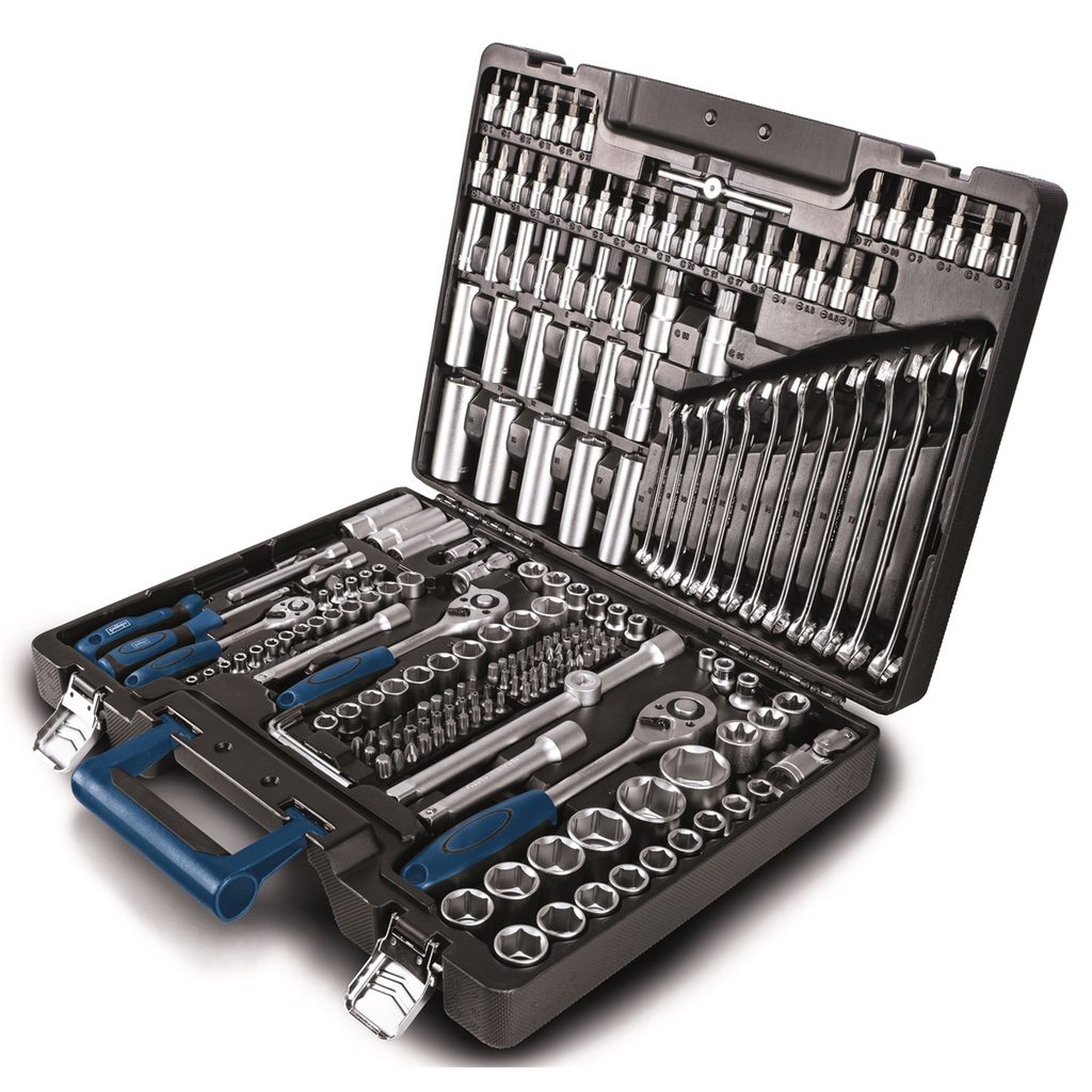 Sada Scheppach TB 217 je velmi praktická a obsáhlá sada nářadí pro většinu prací spojených se šroubováním (217 ks) ukrytá v robustním plastovém kufru. Každý kus nářadí má přesně stanovené místo a bude tak vždy a rychle po ruce. Kufr se dá pomocí přezek pevně uzavřít a můžete ho snadno přenést na místo, kde budete nářadí potřebovat.