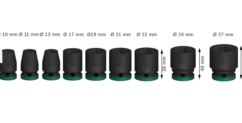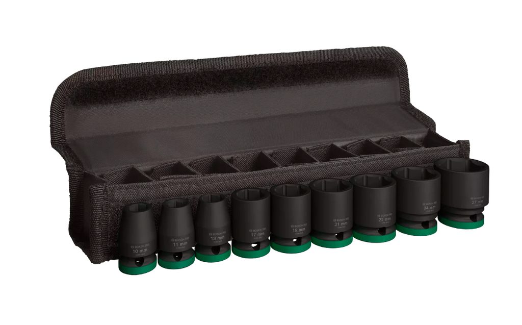 Sada nástrčných hlavic Bosch Impact výkonnostní třídy PRO je ideálním nástrojem pro práci s šestihrannými šrouby a maticemi, kdy se používá rázový utahovák se čtyřhranným upínáním. Tato sada byla navržena tak, aby usnadňovala šroubování při stavbě závodů a práci v oborech těžkého průmyslu.