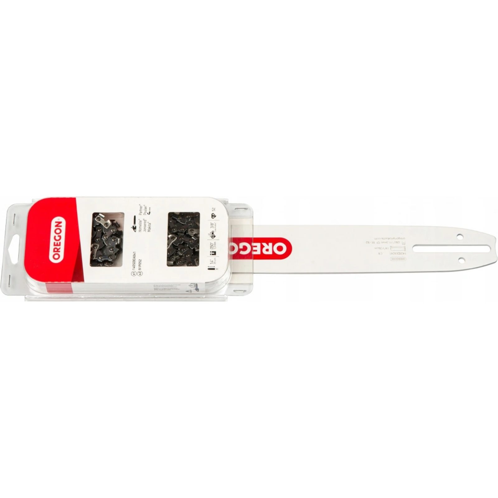 Sada OREGON obsahuje vodící lištu 140SDEA041 a dva řetězy 91P052E, takže je ideální volbou pro majitele menších řetězových pil. Lišta vyniká nízkou hmotností, dobrou ovladatelností a dlouhou životností, přičemž malý rádius špičky pomáhá snižovat zpětný vrh. Řetězy nabízí vysoký řezný výkon, dlouhou výdrž ostří, snadné ostření a univerzální tvar zubu pro široké využití.