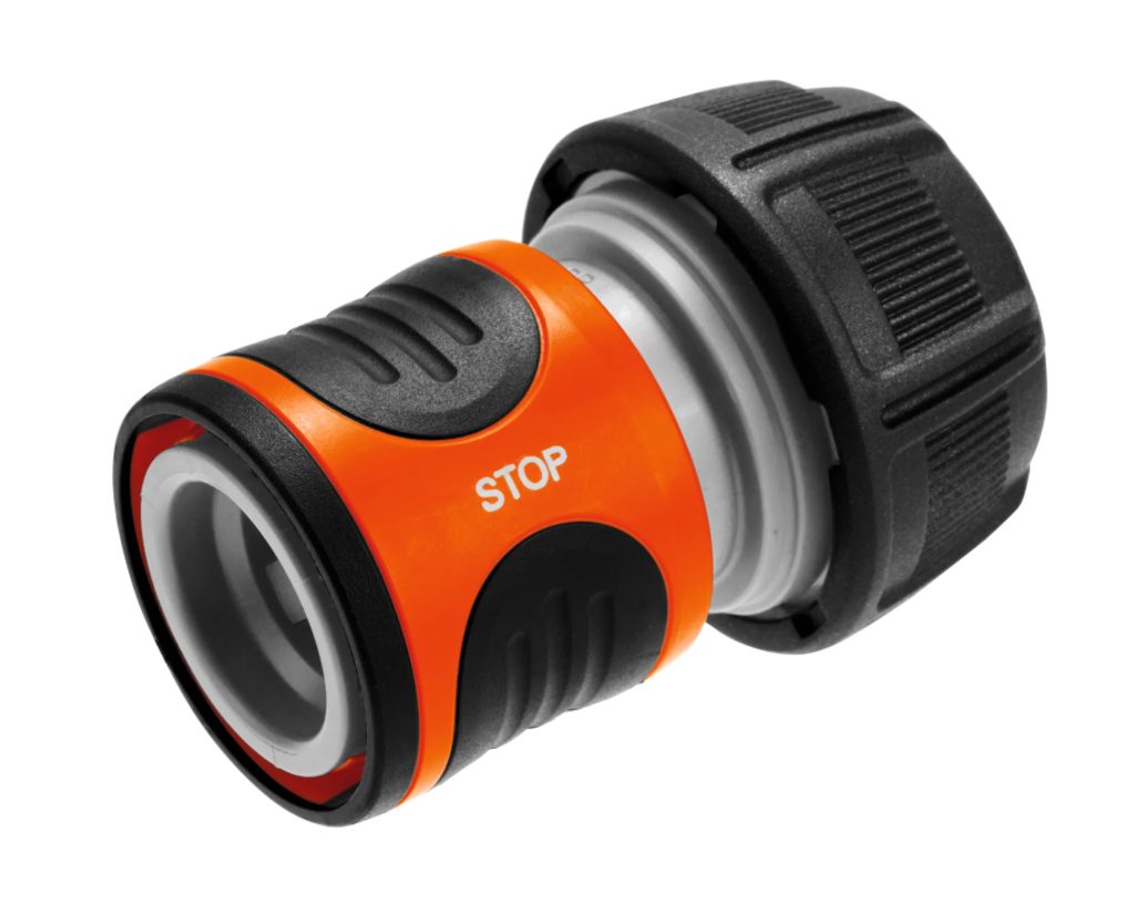 Stopspojka značky GARDENA je inovativní hadicová armatura, která usnadňuje zavlažování vaší zahrady. Tento adaptér se připevňuje na konec hadice a jeho funkce automatického zastavení vody se aktivuje pokaždé, když odpojíte zavlažovací příslušenství. Průtok vody se automaticky přeruší a znovu se spustí, jakmile připojíte nové zavlažovací příslušenství, například postřikovač. Díky této funkci již nemusíte při výměně příslušenství chodit k vodovodnímu kohoutku, což vám ušetří čas i námahu.