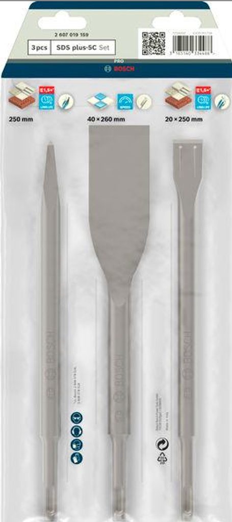 Sada sekáčů Bosch PRO SDS plus-5C 2607019159 je navržena pro náročné sekací práce, zejména při opracování betonu a zdiva. Tyto sekáče se vyznačují dlouhou životností, která je až 1,5× delší ve srovnání se sekáči Bosch SDS plus-3C. Díky tomu jsou ideální volbou pro profesionály, kteří vyžadují spolehlivé nástroje s vysokým výkonem a odolností.