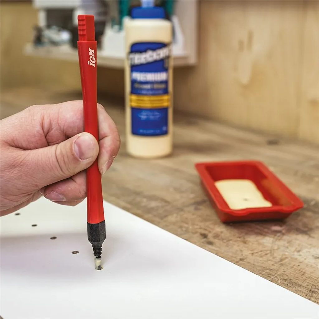 Deset nástavců v různých velikostech využijete pro lepení kolíků, DOMINO kolíků, lamel, úzkých drážek, spár a dalších otvorů. Měkké silikonové nástavce se snadno přizpůsobí tvaru otvoru, rovnoměrně rozetřou lepidlo po celé ploše dřeva uvnitř otvoru, takže spoj je kvalitně zalepený po celé ploše.