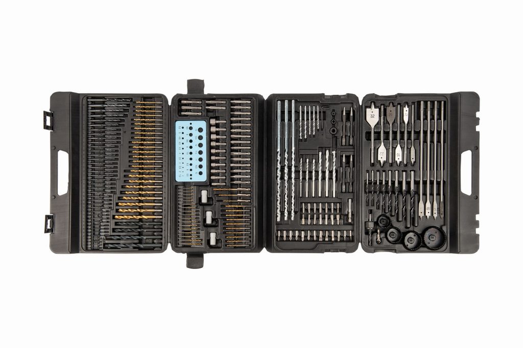 Sada se skládá ze šroubovacích bitů, vrtáků do dřeva, kovu a kamene v různých velikostech, děrovek a několika doplňků.