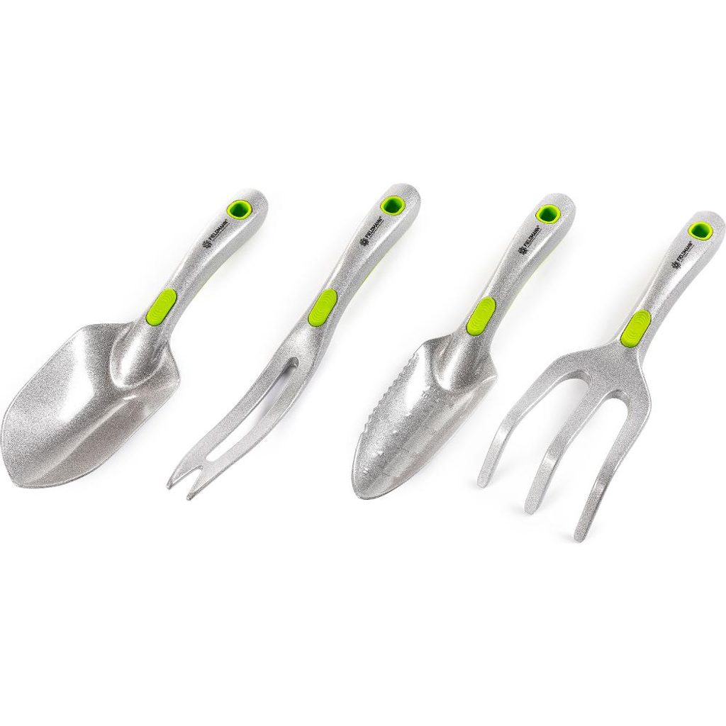 Sada zahradního nářadí FIELDMANN FZNR 1105 se skládá ze čtyř nejpoužívanějších nástrojů. Zahrnuje sázecí a univerzální lopatku, hrabičky a vypichovák plevele, vše navržené tak, aby vám usnadnily práci na zahradě.