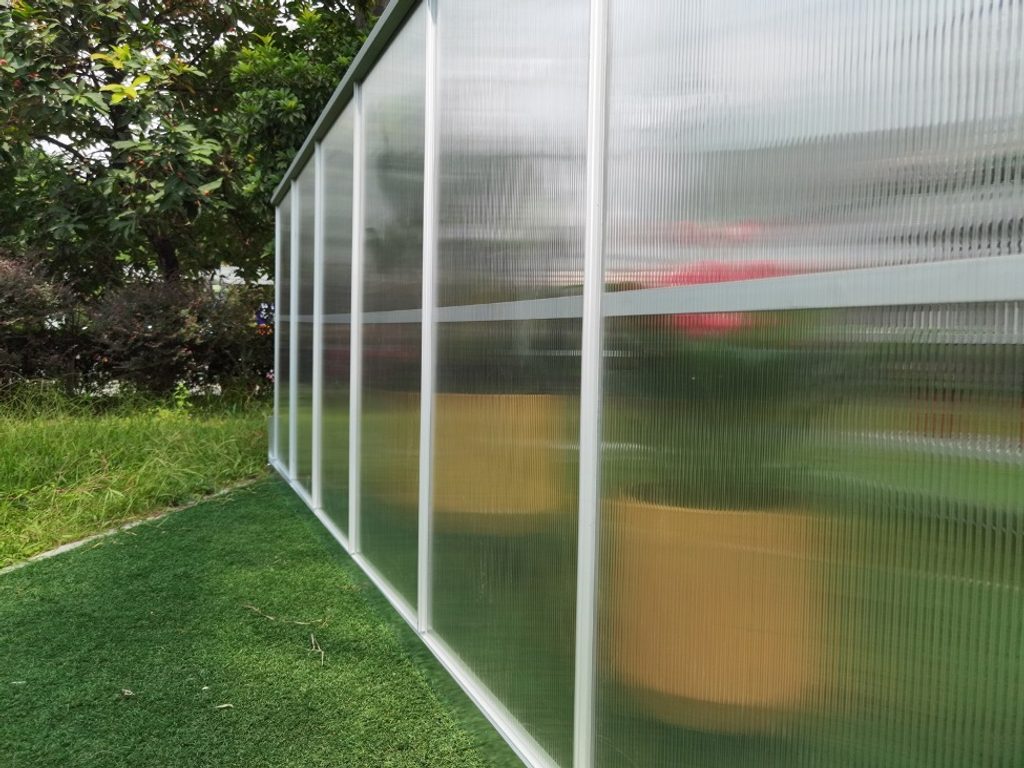 Na prosklení je použito velice kvalitních tepelně-izolačních dvoustěnných komůrkových polykarbonátových desek o síle 4 mm a s UV slunečním filtrem. Tento polykarbonát prošel německou certifikovanou zkušebnou TUV Rheinland.