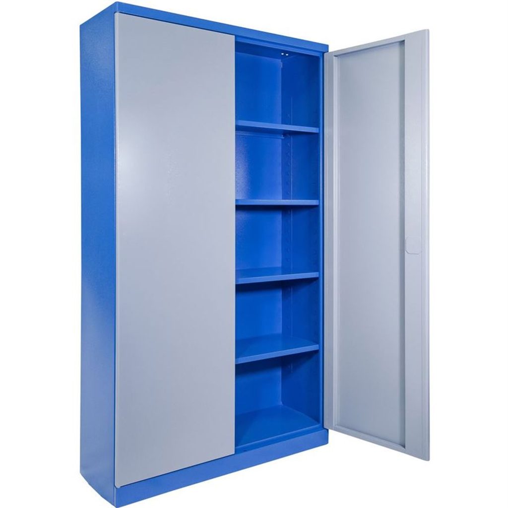 Skříň na nářadí GÜDE Typ C 40679 je ideálním řešením pro uspořádání vašeho nářadí v domácích i profesionálních dílnách nebo výrobních provozech. Tato kovová skříň je opatřena povrchovou úpravou s práškovým lakem, což zajišťuje její odolnost a dlouhou životnost. Její design kombinuje barvu RAL 5015 pro korpus a RAL 7001 pro dveře, což jí dodává moderní a stylový vzhled.