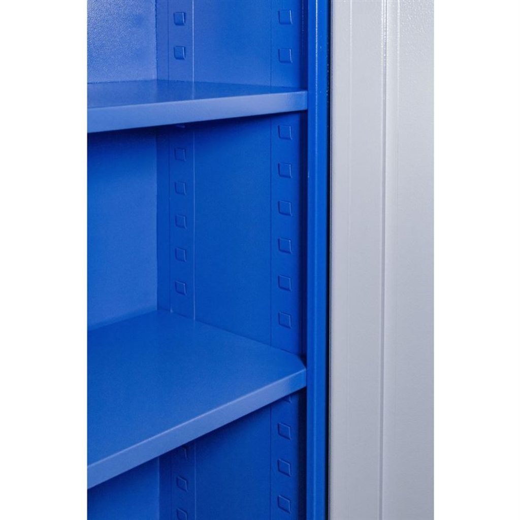 Skříň je dvoudveřová a vybavená uzamykacím systémem s cylindrickým a rozvorovým zámkem, což poskytuje dvojité zabezpečení a ochranu vašeho nářadí. Součástí balení jsou dva klíče. Uvnitř skříně najdete čtyři vyjímatelné police, které umožňují flexibilní nastavení výšky dle vašich potřeb. Každá police má nosnost až 50 kg, což poskytuje dostatek prostoru i pro těžší nástroje a vybavení.