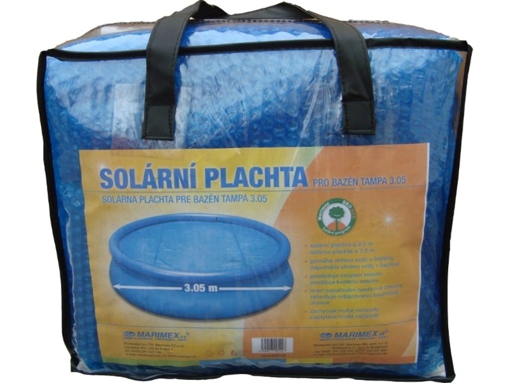 Solární plachta je vyrobena z modré bublinkové polyetylénové tepelně izolační plachty. Solární plachta je vhodná pro všechny bazény s průměrem hladiny 2,5 m.