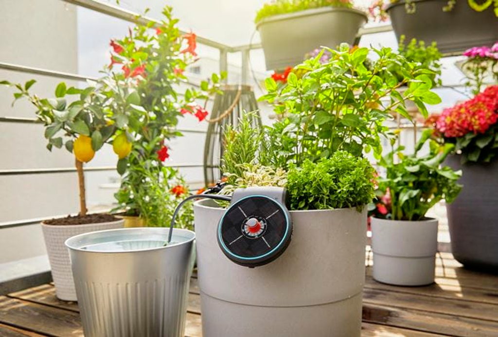 Péče o rostliny, když nejste doma. S GARDENA solárním zavlažováním AquaBloom jsou vaše balkonové rostliny a rostliny v květináčích v dobrých rukou - po celou sezónu. AquaBloom zavlažuje a postará se o vaše rostliny i v době, kdy nejste poblíž.