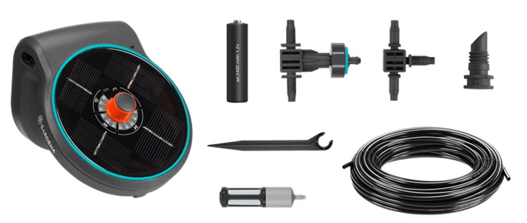 Je kombinací čerpadla pro čerpání vody, řídicí jednotky pro definování zavlažovacího plánu a solárního panelu, který napájí dodávané dobíjecí baterie. Neustálou kontrolu nad zavlažováním až pro 20 rostlin vám umožní 14 předdefinovaných zavlažovacích programů pomocí tlak vyrovnávajících kapačů.
