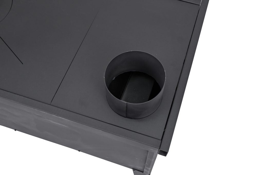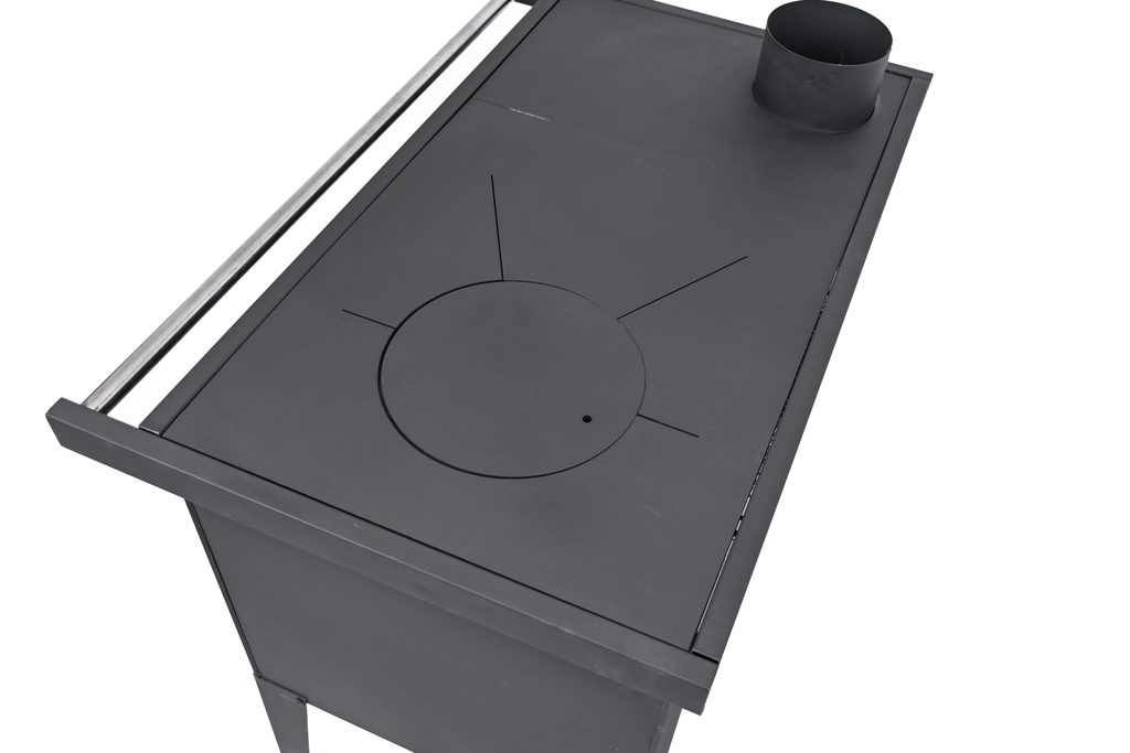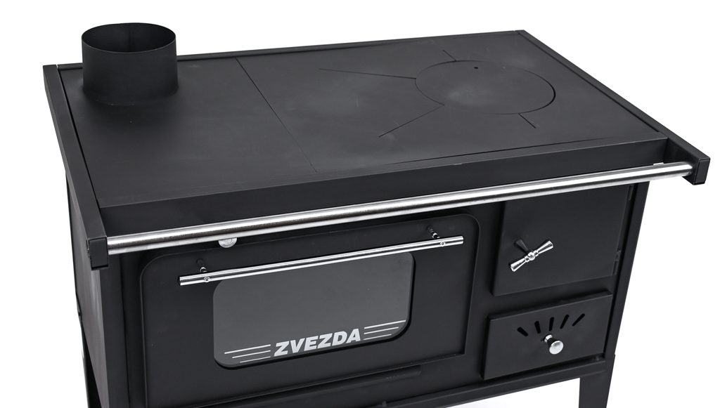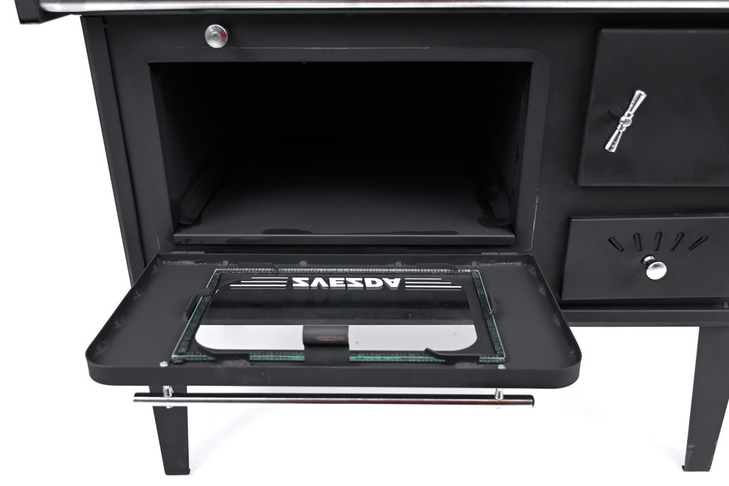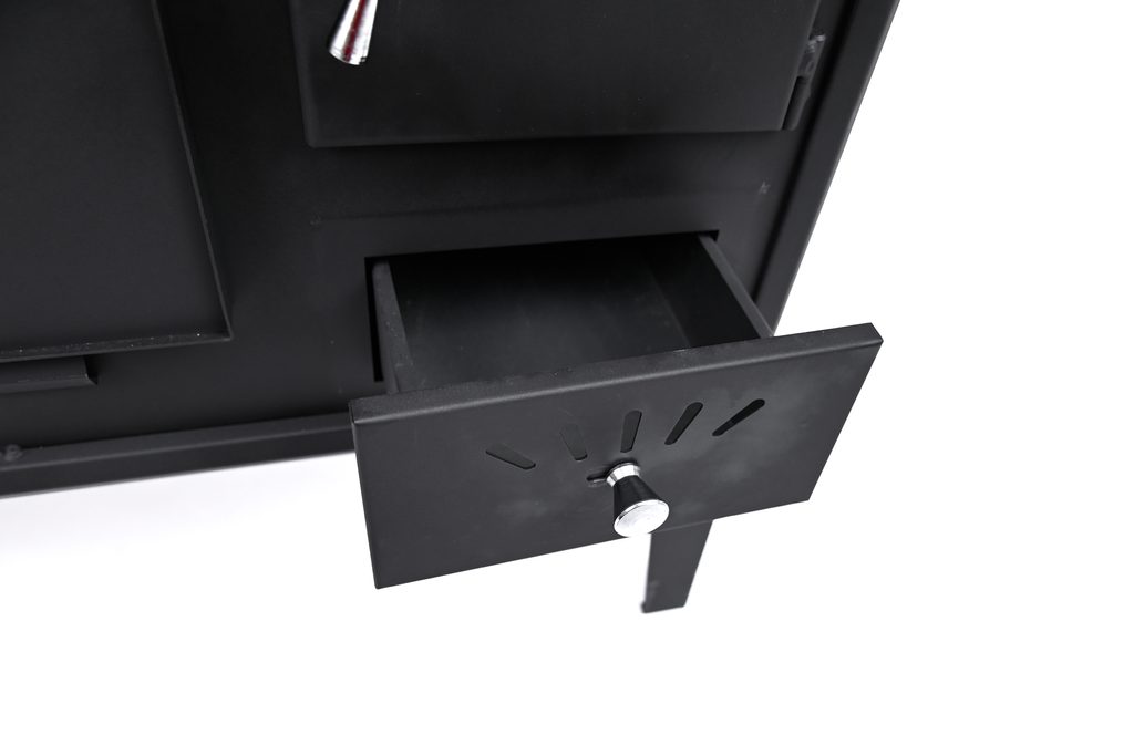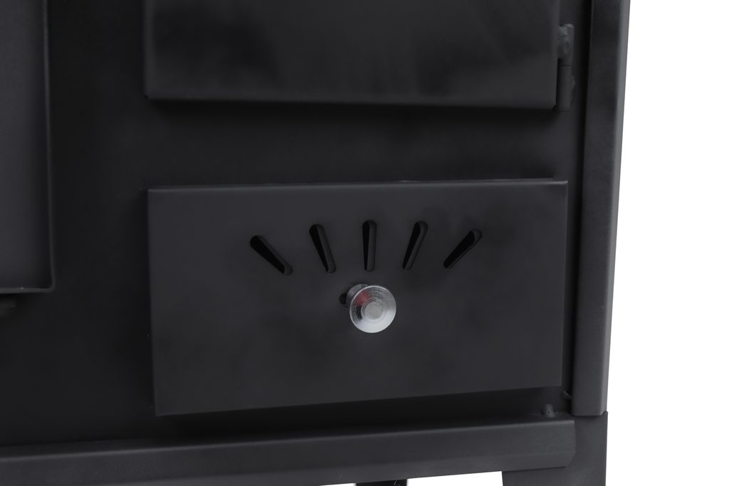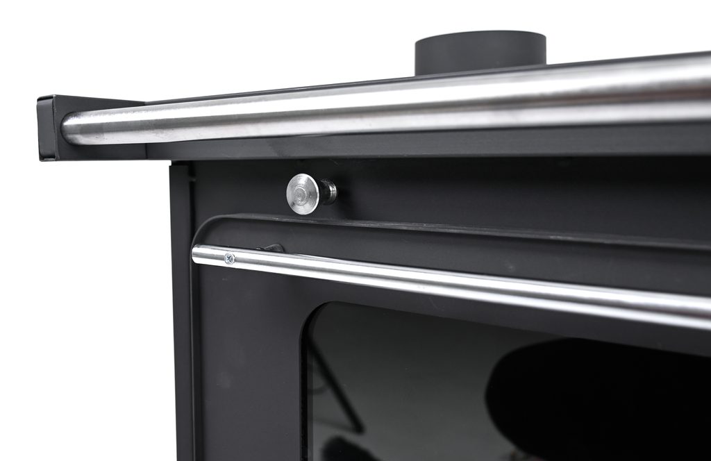 Dveře trouby jsou vybaveny kovovými klikami, které usnadňují otevírání a zavírání. Navíc má horní deska sporáku tloušťku 6 mm a je vyrobena z kvalitní oceli, což zvyšuje jeho odolnost a trvanlivost.