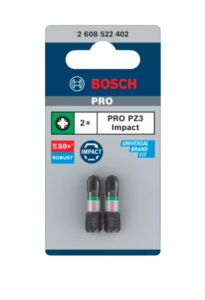 Šroubovací bit Bosch výkonnostní třídy PRO je vybaven rozšířenou torzní zónou, která efektivně absorbuje torzní napětí na špičce bitu. Díky tomu je zajištěna dlouhá životnost a spolehlivost při používání. Tepelně zpracovaná modifikovaná ocel pro vynikající pevnost a odolnost vůči vysokému krouticímu momentu.
