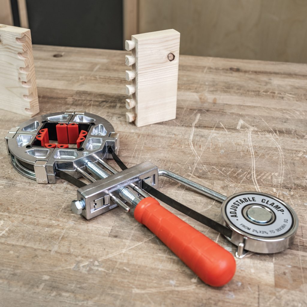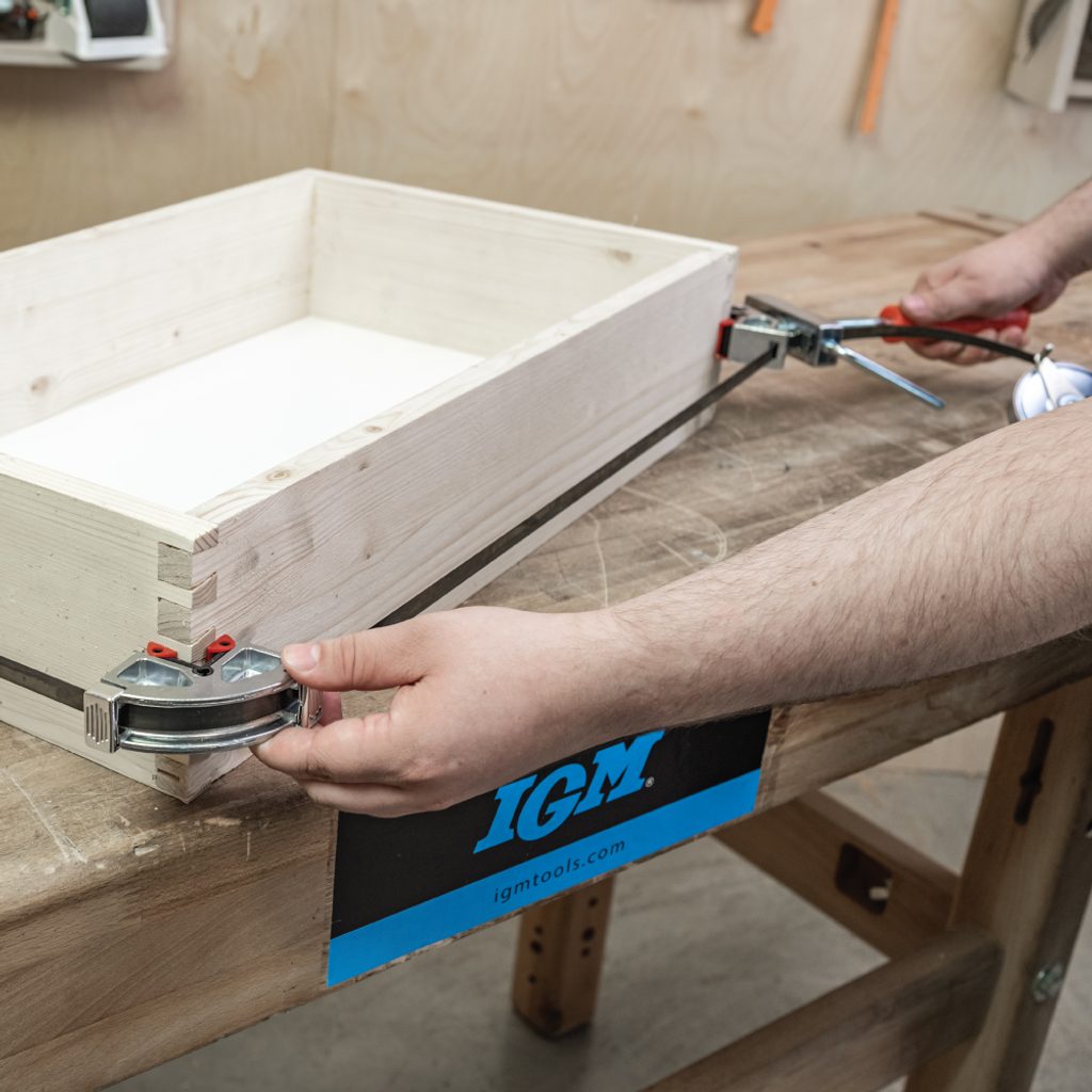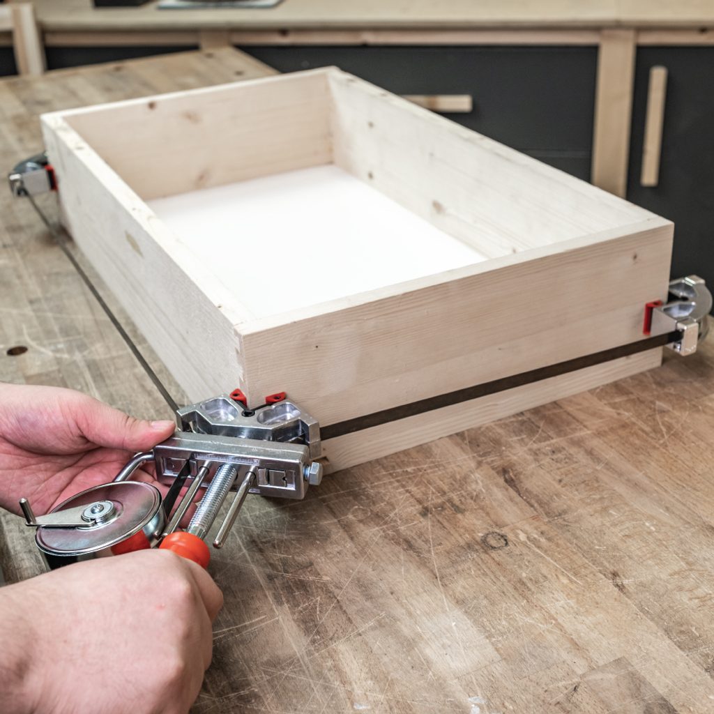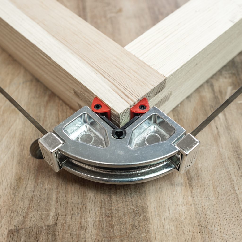 Stahovací svěrka na rámy je praktický a univerzální přípravek pro lepení rámů a rámečků libovolného tvaru až se čtyřmi rohy. Po nanesení lepidla stačí rám vložit do přípravku a jednoduše jej stáhnout.