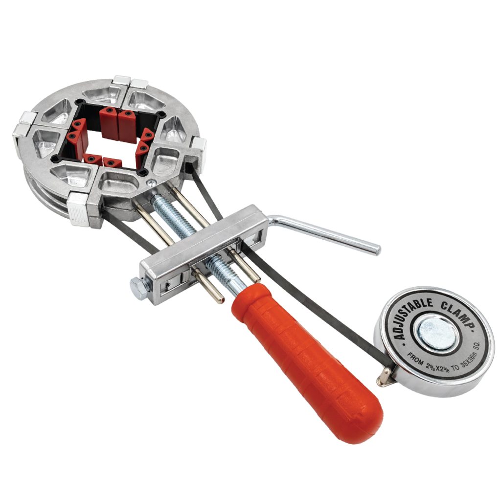 Díky výkyvnému mechanismu rohových segmentů se eliminuje odchylka úhlů a je možné bez problémů stáhnout nejen klasický pravoúhlý rám, ale také trojúhelníkový, s půlkruhovým obloukem či nepravidelného tvaru.