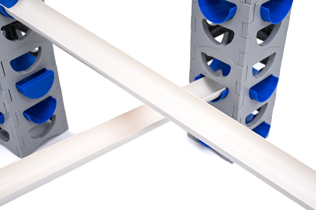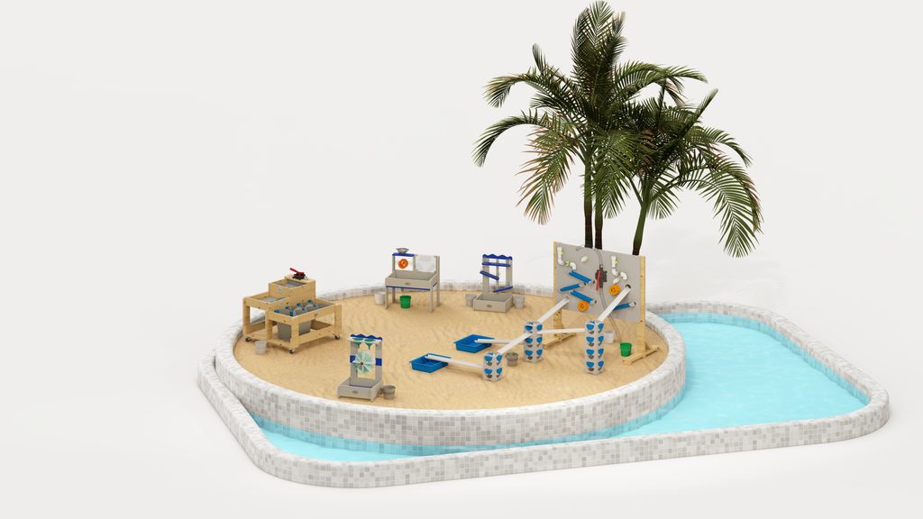 S touto sadou kostek na vodu a písek mohou děti libovolně stavět různé cesty a rozvíjet logické myšlení. Z kostek se mohou postavit věže různých výšek, aby byl dostatečný sklon a voda tak mohla téci postavenou trasou. Sada umožňuje dětem rozhodnout se o uspořádání a konfiguraci celé stavby.