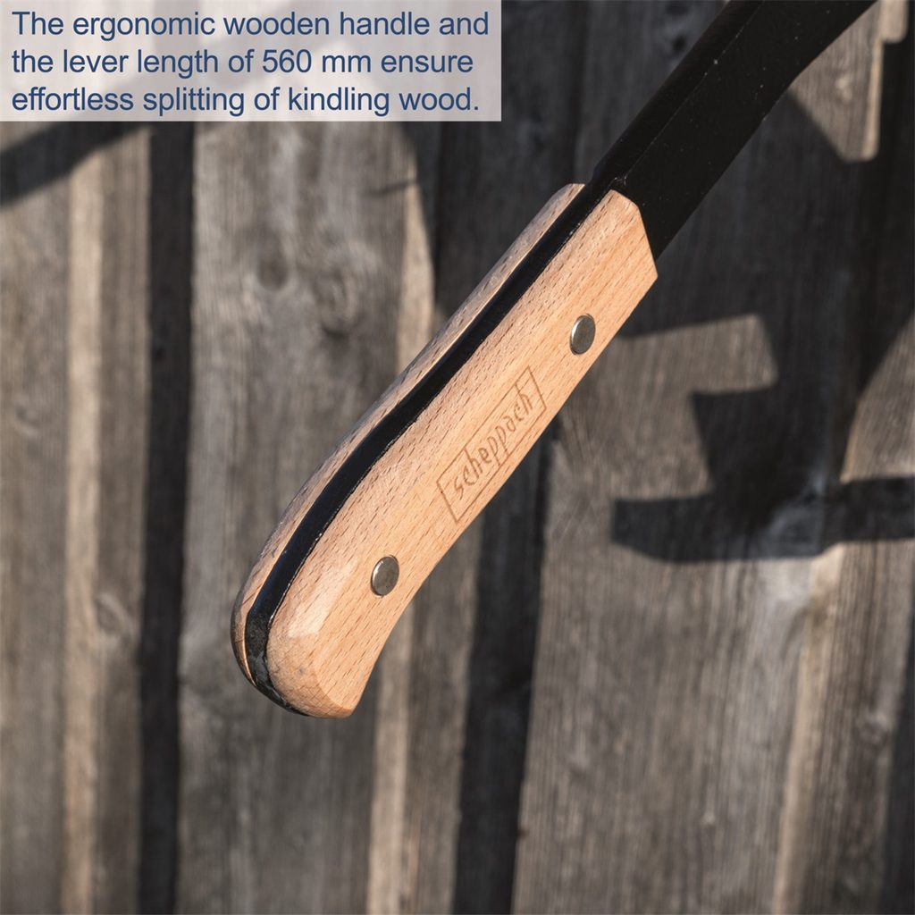 Ruční nástěnný štípač na dřevo Scheppach je perfektní volbou pro rychlou přípravu třísek a dřeva k podpalům pro venkovní ohniště, krby, kamna nebo kotle.