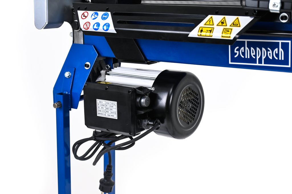 Štípač Scheppach HL 760 LS má odnímatelnou ochrannou klec, prodloužený pracovní stůl, pojistku uvolnění polena při výpadku proudu, automatickou funkci návratu pístu a díky držadlům a kolům je také plně mobilní.