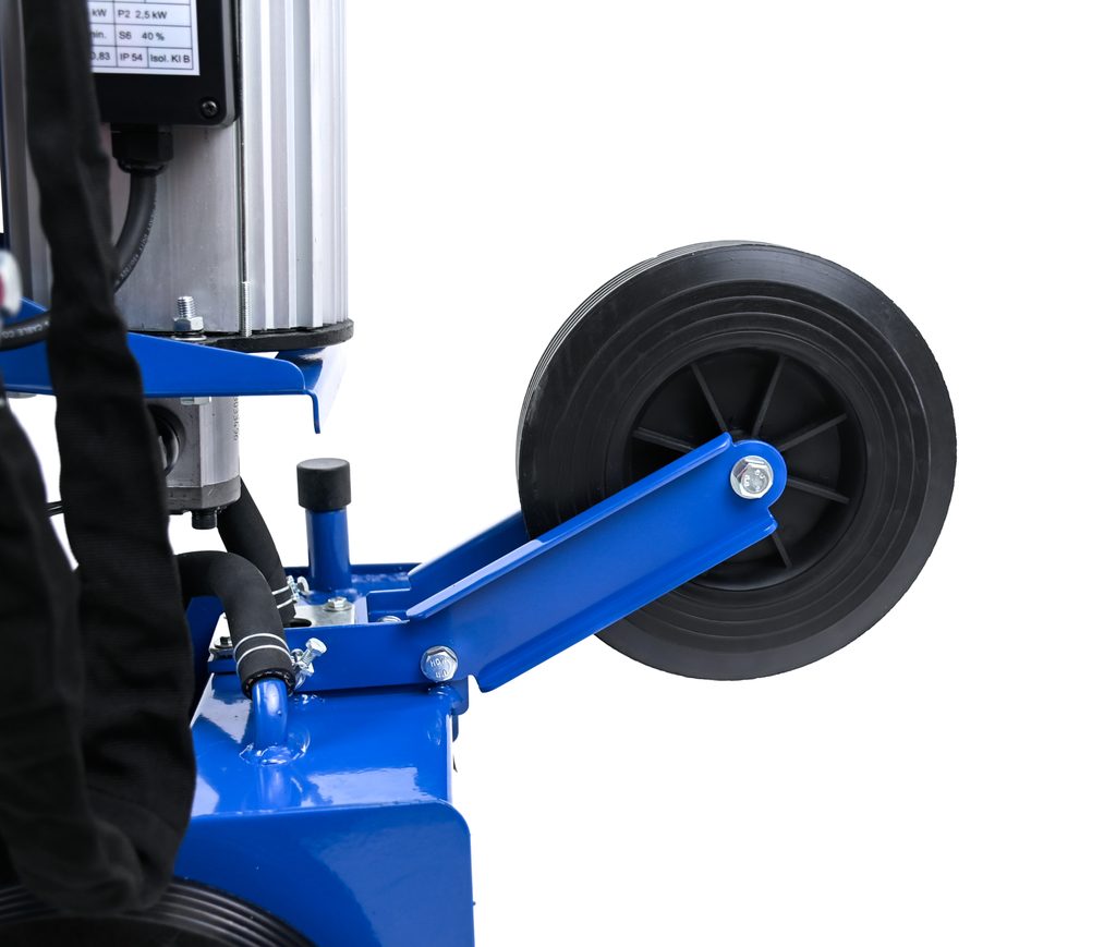 Robustní podvozek se třemi velkými koly usnadňuje přesouvání stroje. Celá konstrukce je navržená pro dlouhou životnost – z kvalitní oceli s práškovým lakováním. Uživatelé navíc ocení možnost prodloužené záruky a kvalitní servisní zázemí největšího výrobce štípačů v Evropě.