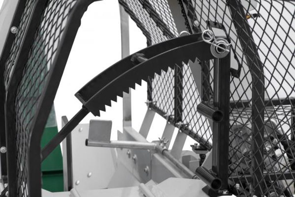 Ovládací prvky jsou rozmístěny logicky a přehledně, což umožňuje snadné a intuitivní ovládání i méně zkušeným uživatelům. Součástí stroje je automatický pásový dopravník, který zajišťuje plynulý a nepřerušovaný transport zpracovaného dřeva. Díky spojení funkcí pily a štípače do jednoho zařízení dosahuje stroj vysoké efektivity při zpracování dřeva.