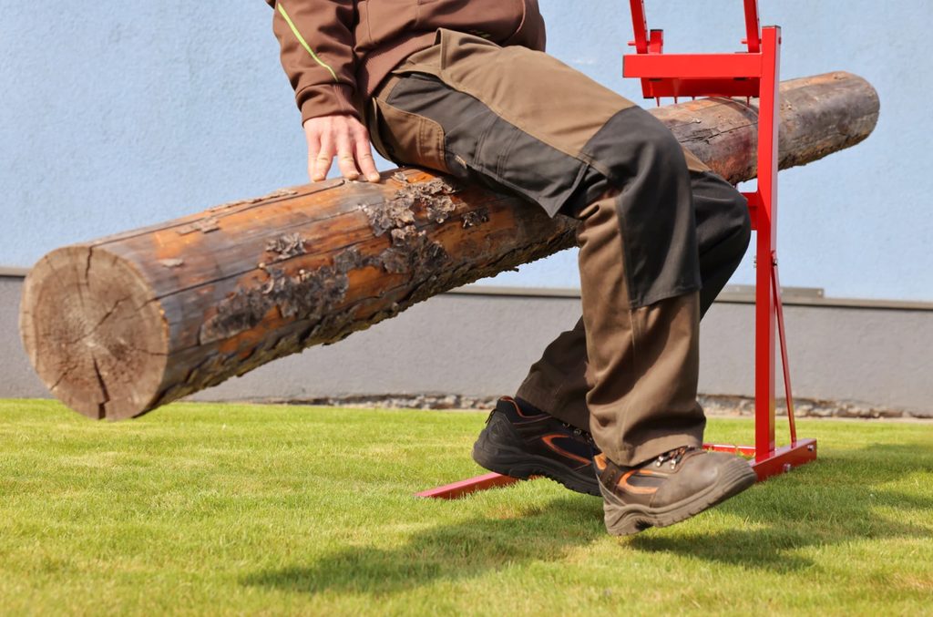 Jednou z hlavních výhod tohoto stojanu je jeho skládací konstrukce, která umožňuje rychlé rozložení do pracovního stavu během několika vteřin. Díky ideální pracovní výšce je stojan perfektní pro práci s motorovou pilou, což zajišťuje pohodlí a efektivitu při práci. Na rozdíl od tradičních koz na řezání dřeva, práci se stojanem zvládne snadno i jediná osoba.