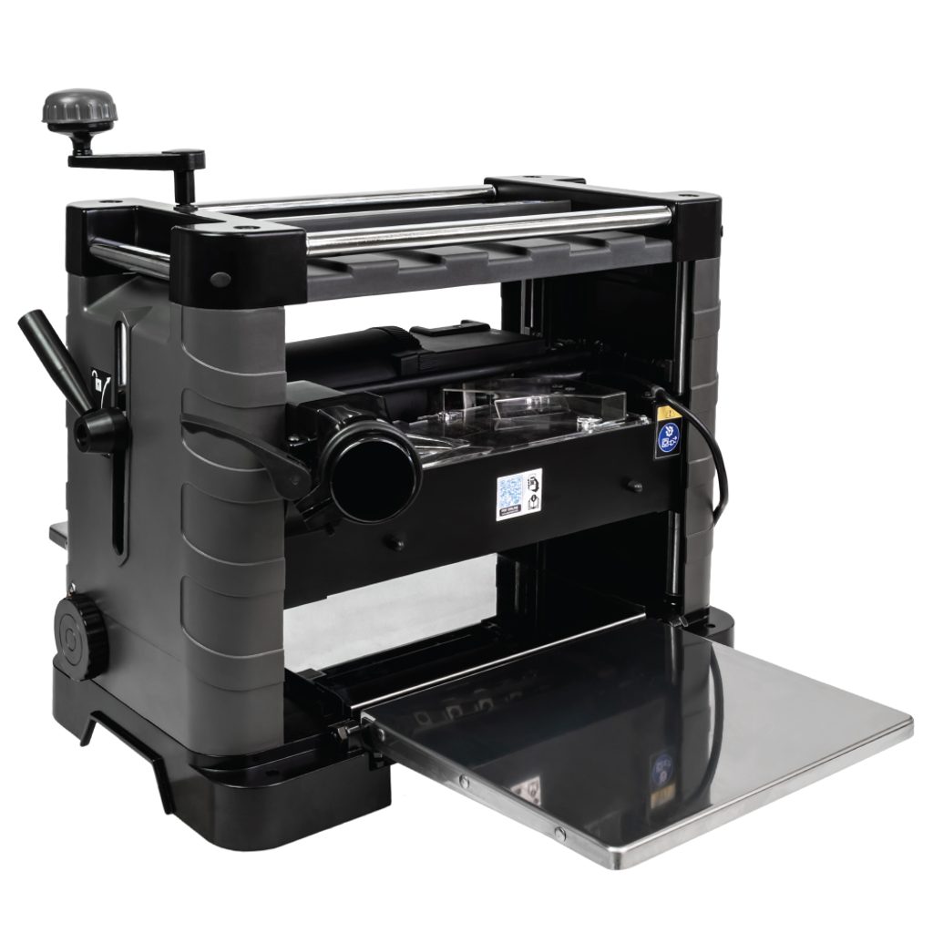 Výška protahování je aretovatelná, což zaručuje vysokou přesnost tloušťkování. O bezpečný a plynulý posuv obrobku se starají pogumované podávací válce, které materiál pevně drží a minimalizují riziko zpětného rázu. Výkonný motor je navíc chráněn proti přetížení a nechybí ani ochrana proti nechtěnému opětovnému spuštění stroje po výpadku elektrického proudu.
