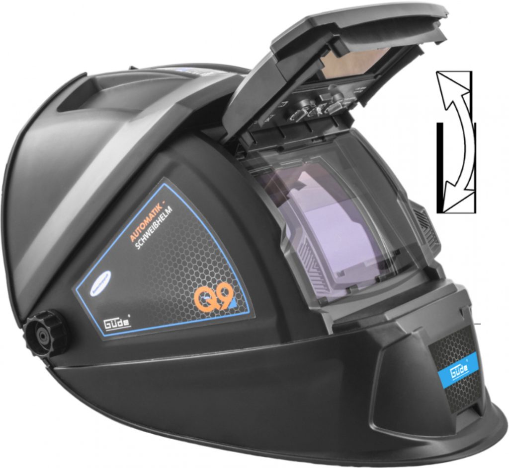 Vyklápěcí samostmívací kazeta - automatické ztmavení (rozjasnění) filtru v rozsahu DIN 9 - 13 (4), vč. přesného nastavení citlivosti (filtru) na intenzitu vnějšího osvětlení a prodlevy mezi zhasnutím oblouku a projasněním.