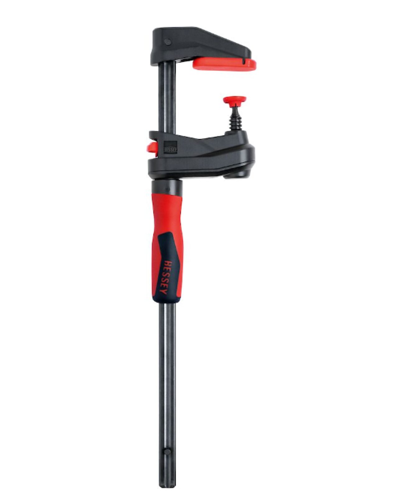 Převodová svěrka GearKlamp, která dokáže perfektně pracovat i v těch nejužších prostorech díky mechanismu, který odděluje rukojeť od tlačného vřetena u vyložení a zároveň od vodící kolejnice. Upínací síla GearKlamps se přenáší díky vnitřnímu ozubenému mechanismu ukrytému v posuvné čelisti.