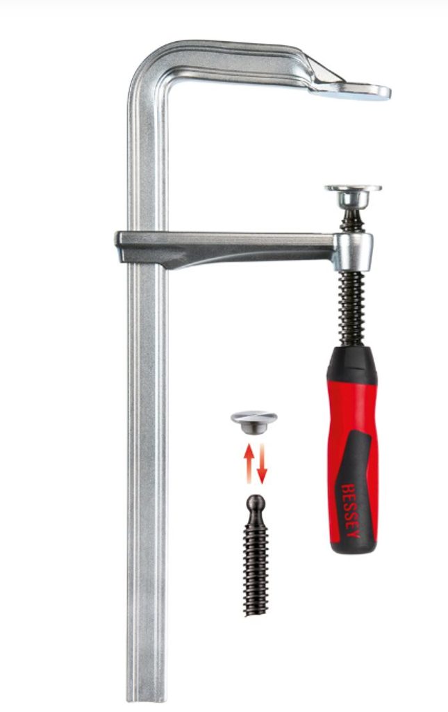 Ocelová svěrka BESSEY, která tvarově stabilní a vysoce odolná proti překroucení. Zušlechtěné kluzné rameno a zušlechtěná vodící tyč s pevným ramenem zaručují pružné upínání.