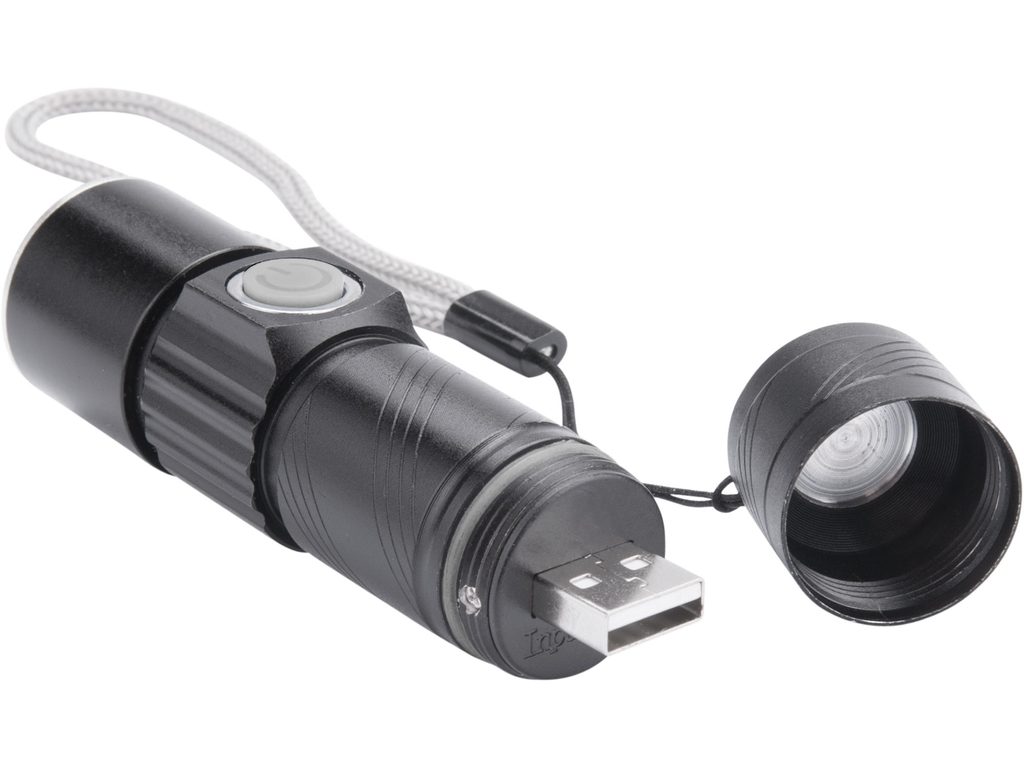 Nabíjecí svítilnu lze nabíjet z běžně dostupných USB nabíječek nebo přímo z počítače. Funkce ZOOM, díky teleskopické konstrukci je možné měnit velikost světelného kuželu. Fosforeskující tlačítko na konci svítilny. Svítilna má celokovové tělo.