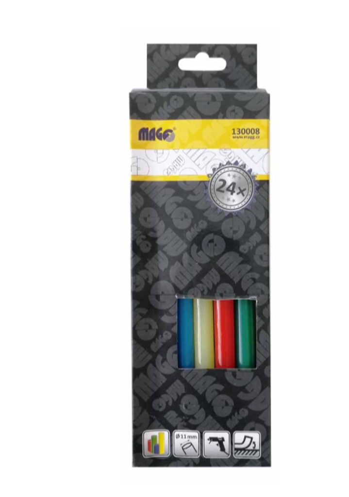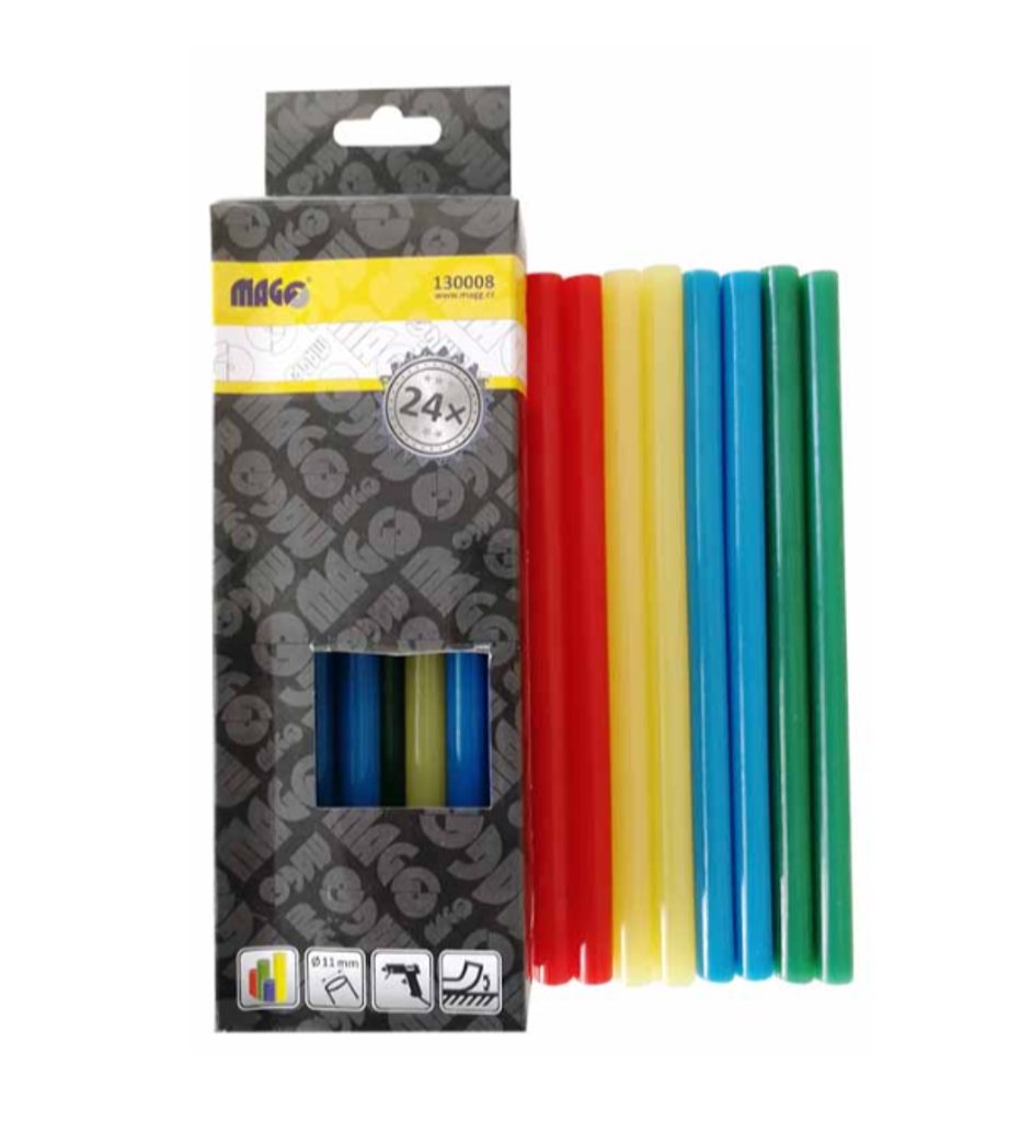 Díky barevnému provedení můžete své výrobky nejen slepovat, ale také zdobit, zvýrazňovat spoje nebo vytvářet barevné efekty na různých materiálech. Tyčinky jsou vhodné do všech běžných tavných pistolí na průměr 11 mm.