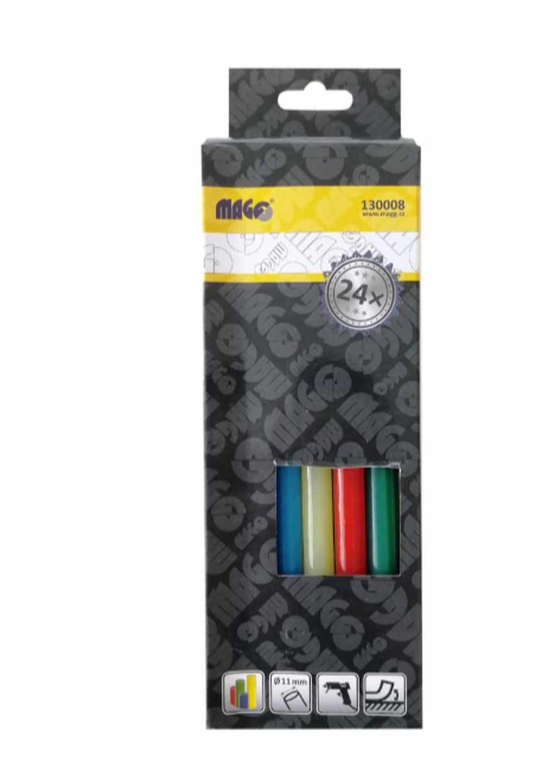 Barevné tavné tyčinky MAGG 11 mm 130008 jsou skvělou volbou nejen pro kreativce a kutily, ale i pro každého, kdo chce dodat svým projektům originální vzhled. V balení najdete celkem 24 kusů tyčinek v pestrých barvách – modré, žluté, zelené a červené. Každá tyčinka má rozměr 11 x 200 mm, což umožňuje pohodlnou práci i na delších projektech.