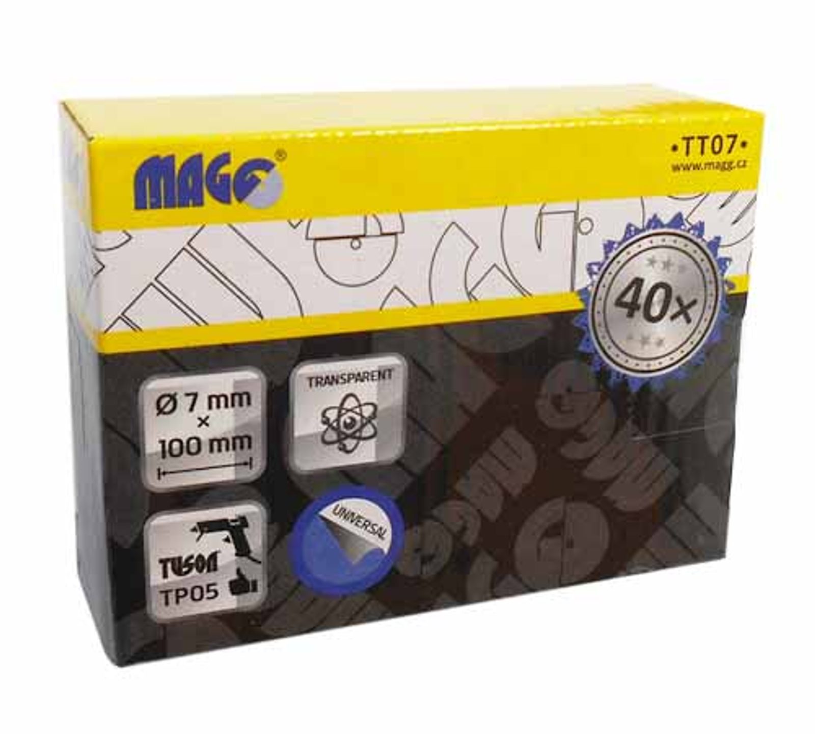 Transparentní tavné tyčinky MAGG TT07 s průměrem 7 mm jsou ideální volbou pro každého, kdo rád tvoří, opravuje nebo kutí doma i v dílně. Jsou kompatibilní s tavnou pistolí MAGG TP05, ale využijete je i s jakoukoliv standardní pistolí na tyčinky o průměru 7 mm.