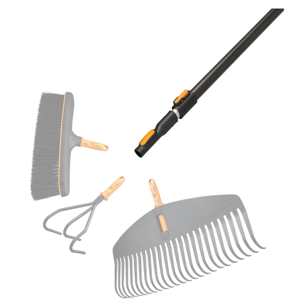 Produkt je součástí systému Fiskars OneClick – výměnného systému, ve kterém jednu násadu kombinujete s různými nástavci podle typu práce.