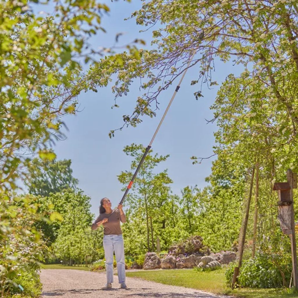 Teleskopické stříhací kopí StarCut Pro L je ideálním pomocníkem při péči o střední a vysoké stromy. Díky délce od 172 až 400 cm, která zajišťuje dosah až 6,5 metru (v závislosti na výšce uživatele), snadno dosáhnete i na vzdálené větve. Kompaktní a zapouzdřená stříhací hlava zabraňuje zamotávání větví, což zaručuje snadné a plynulé stříhání.